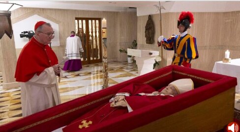 5.تدفین بین روز چهارم و ششم پس از مرگ پاپ و معمولاً او را در سرداب های واتیکان در زیر کلیسای سنت پیتر برطبق سنت در سه تابوت (چوبی، سربی و دوباره چوبی) دفن می کنند.
